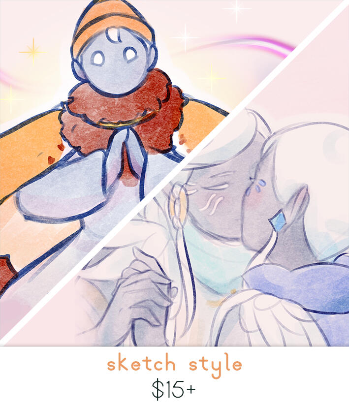 • No particular limitation to requests other than no offensive or inappropriate content.PROCESS• I'd like to discuss the request before starting sketching, to decide if it's something I'd be comfortable/able to do. You may have a general view if I'd be able to attend to your expectations by browsing through my art and how I usually approach drawing.• Providing reference photos and detailed explanation of your idea /characters included in it/ helps a lot!